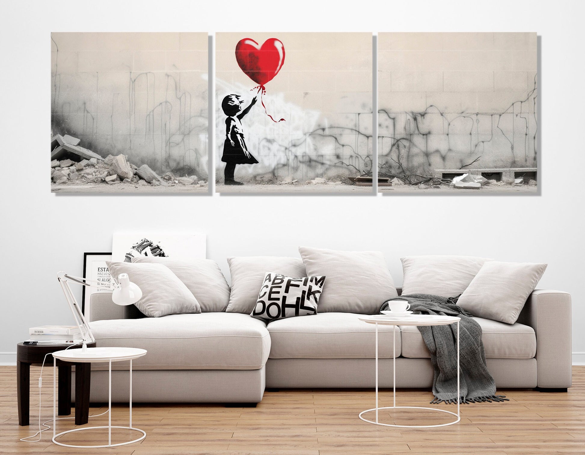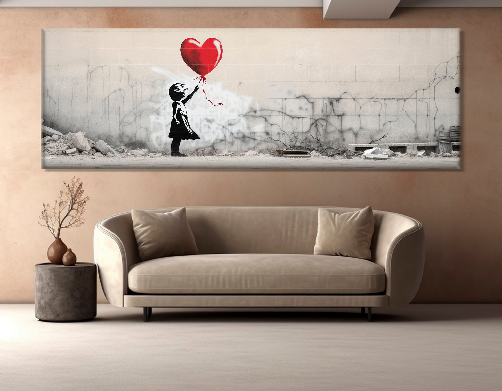 - Banksy balloon girl design on premium cotton canvas print for authentic street art canvas look