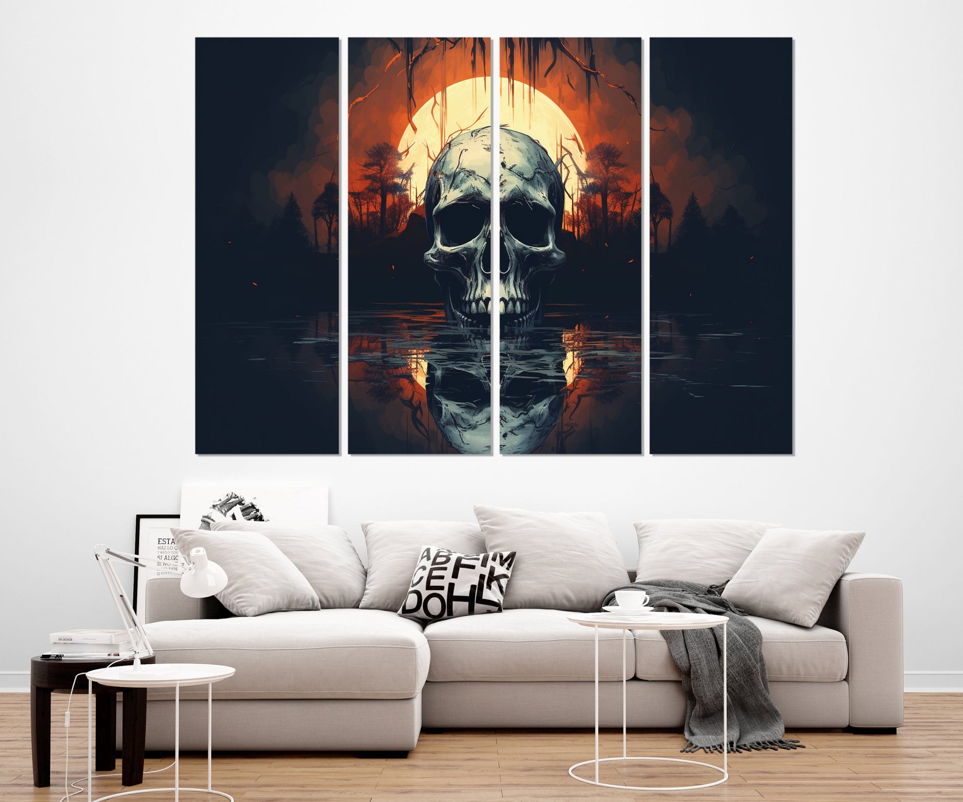 Gothic Wall Art featuring a Skull Canvas Print with a full moon sets a hauntingly elegant tone for any room, delivering vintage gothic painting vibes that elevate your interior style. This ready to hang canvas transforms your space with dark academia decor appeal while providing a durable, gallery wrapped canvas crafted from 100% cotton for lasting beauty. The artwork, enhanced by AI creativity and printed with solvent-free HP Latex inks, ensures vibrant colors and eco-friendly quality. Perfect for those seeking skull wall art or full moon wall art that complements gothic wall decor, this piece arrives ready to hang with no extra framing needed.
