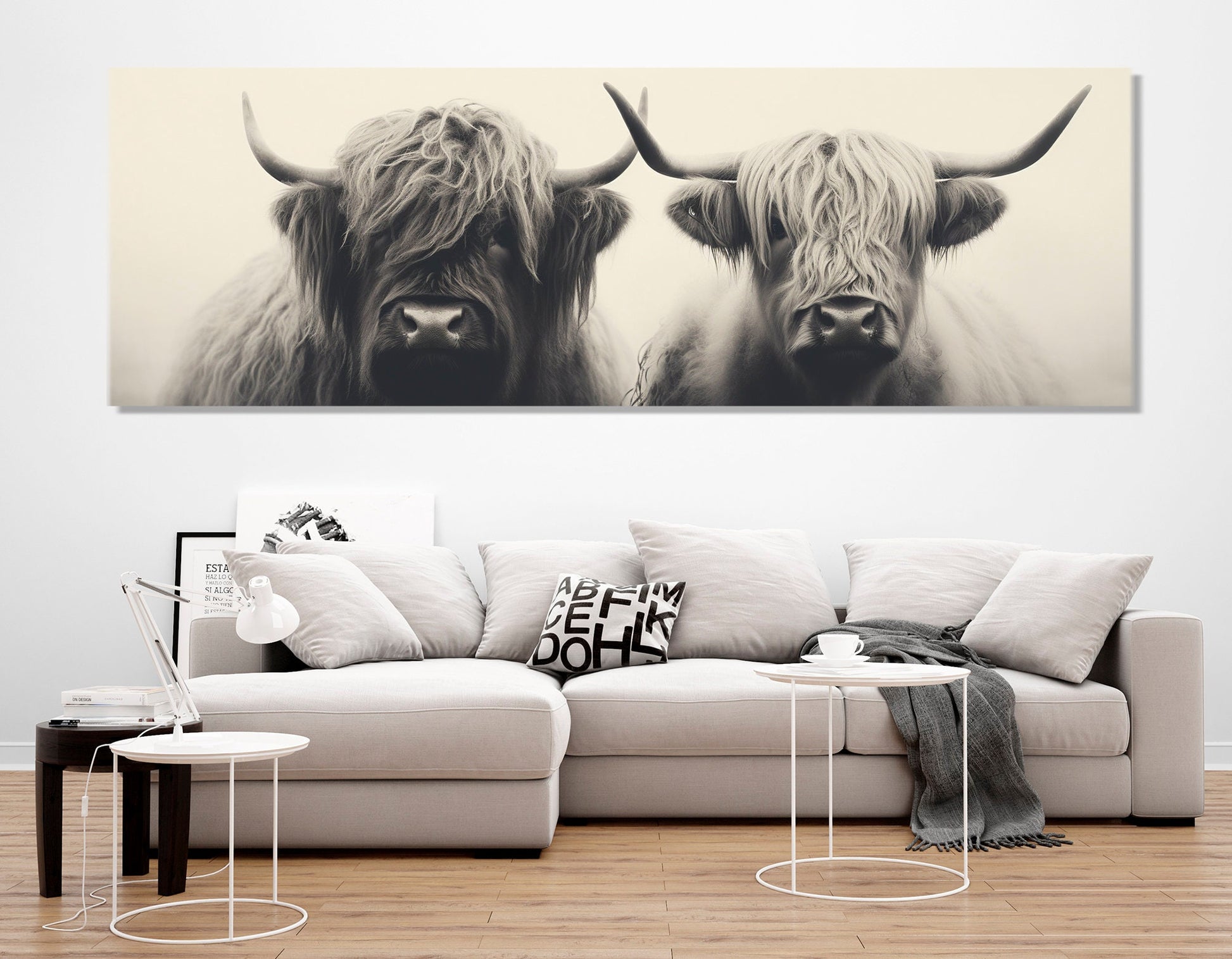 Highland Cows Canvas - Rustic Bedroom Decor | Romantic Animal Couple Print