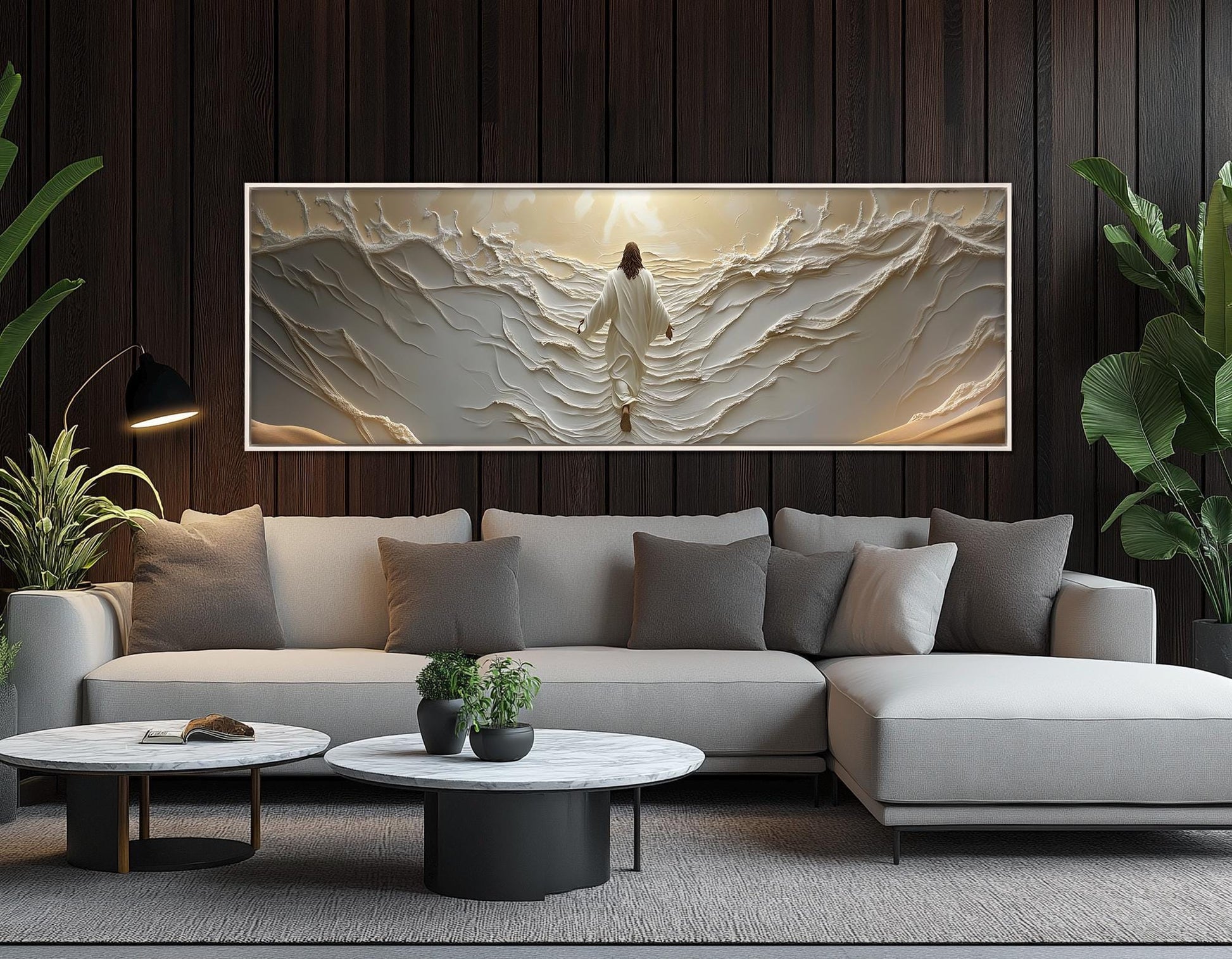 Bring inspirational faith into your living space with this Jesus Walking on Water Canvas print—a perfect addition to any Christian bedroom painting collection or spiritual wall decor ensemble.