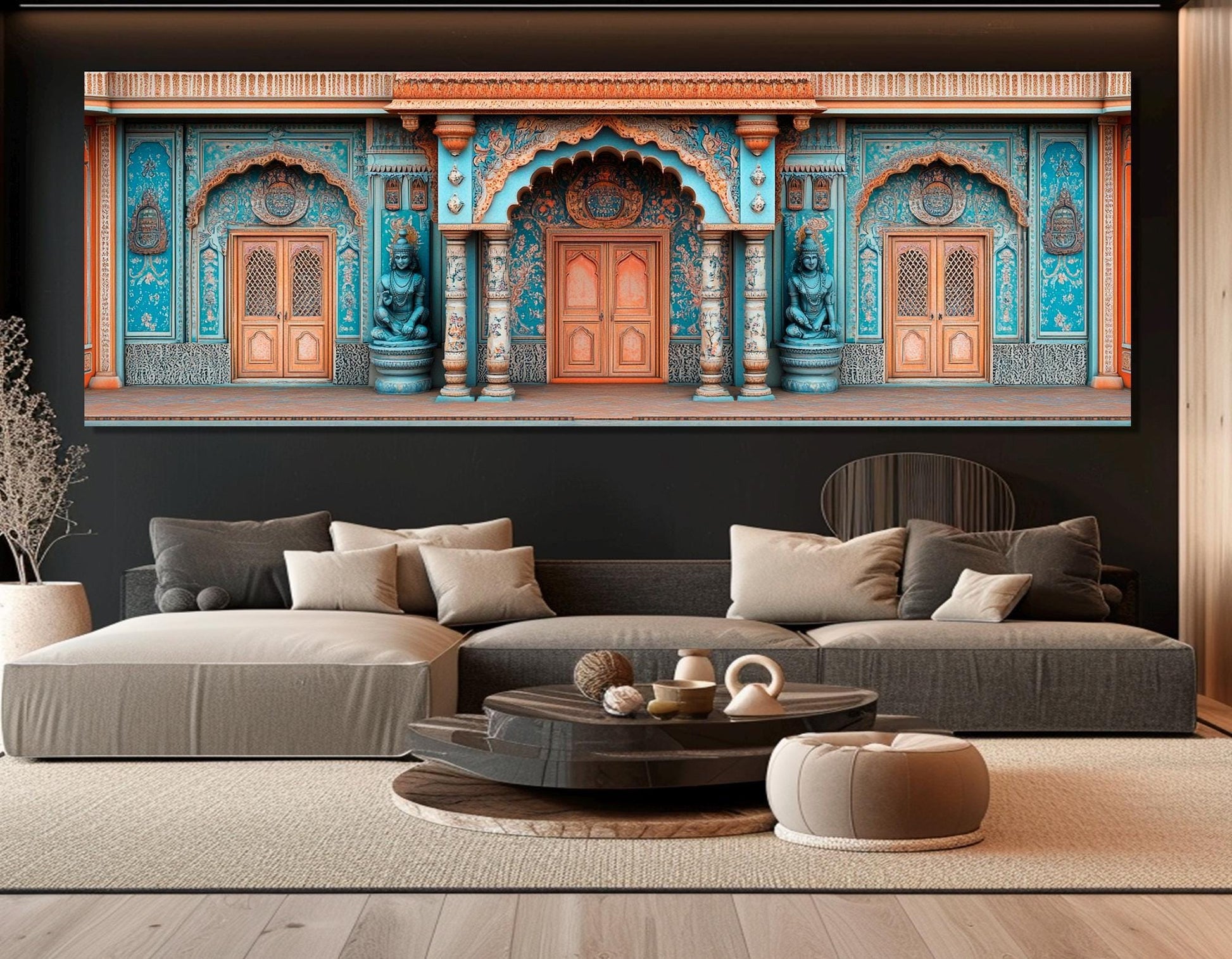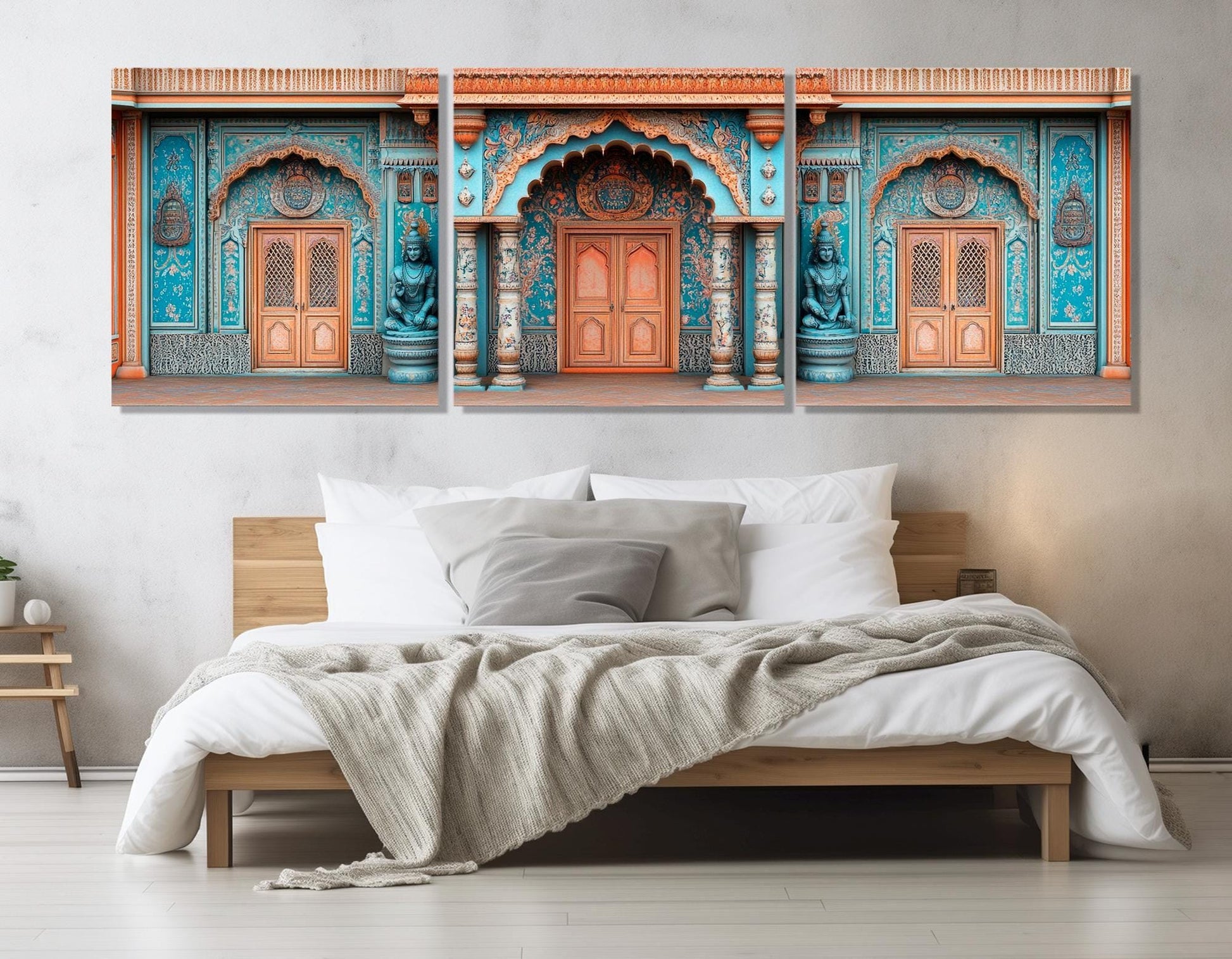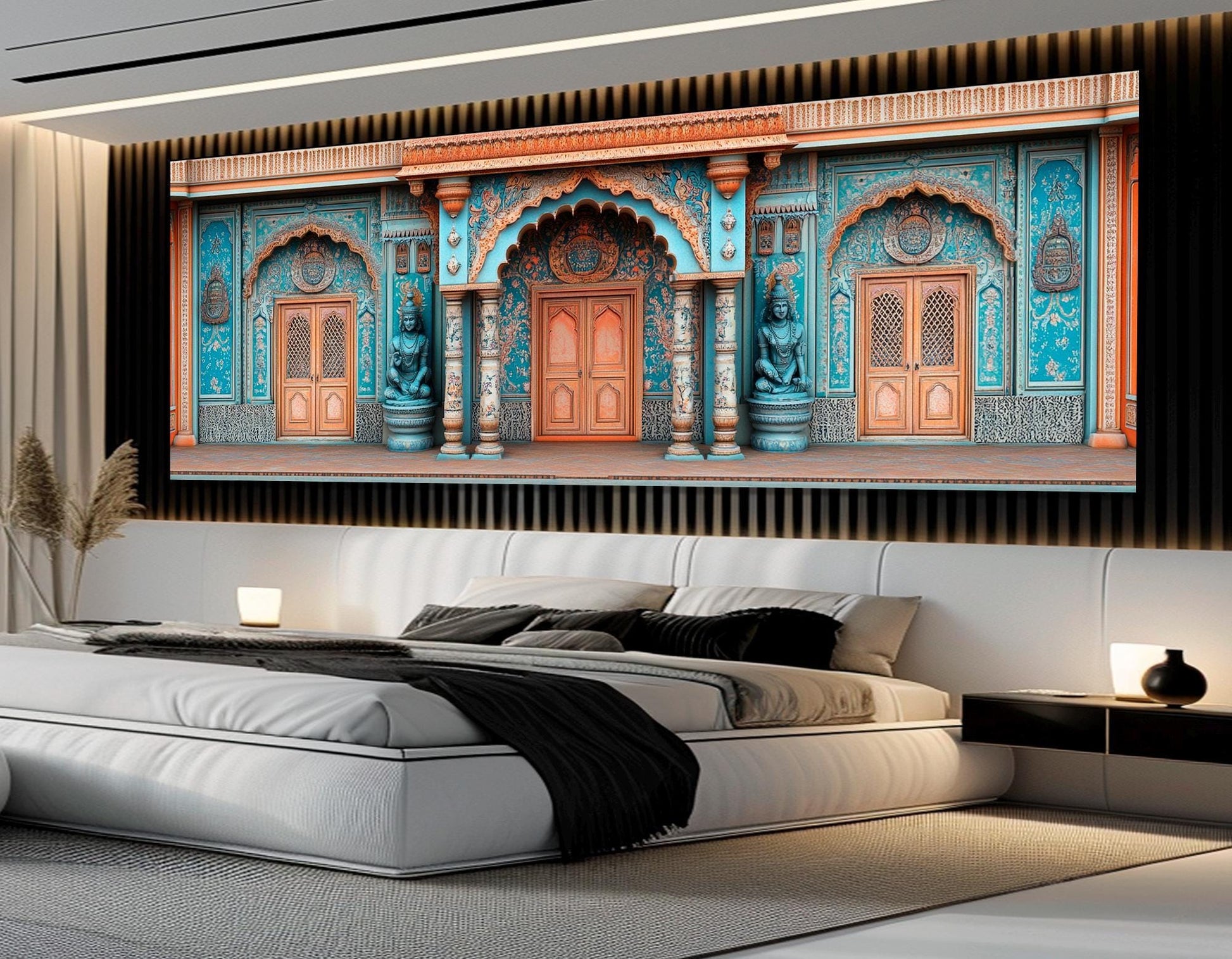 Perfect for lovers of Indian culture and Rajasthan wall decor, this framed canvas art transforms your space with authentic motifs of Indian doors poster designs that tell stories of heritage and artistry. Whether you select the floating frame canvas or multi panel canvas set, each piece arrives ready to hang, making it simple to enrich your home with meaningful decor that reflects India’s rich artistic legacy.