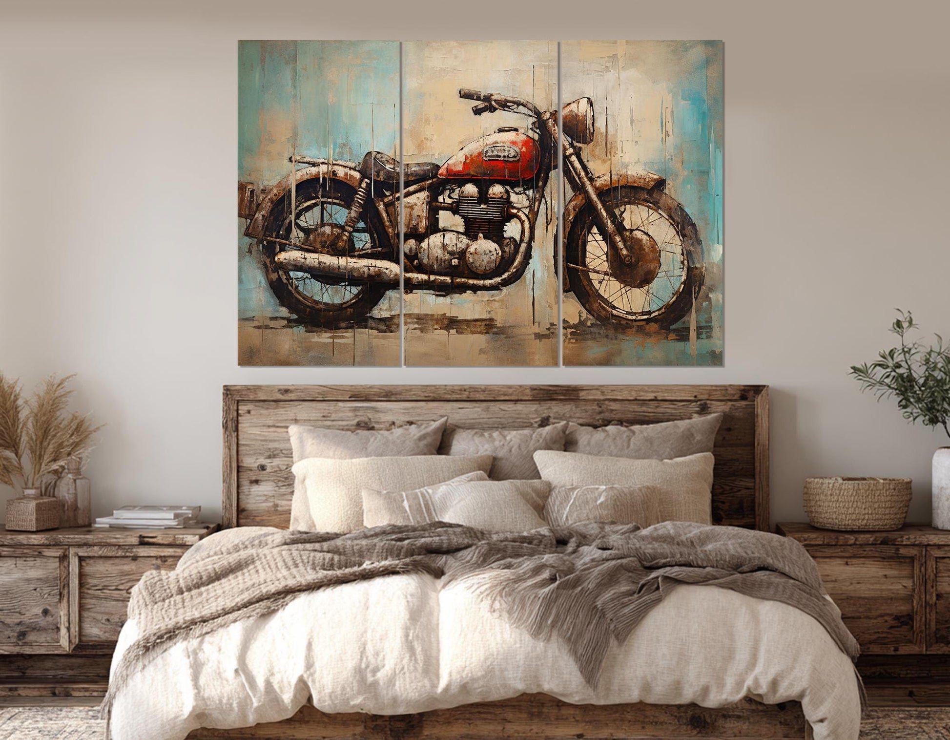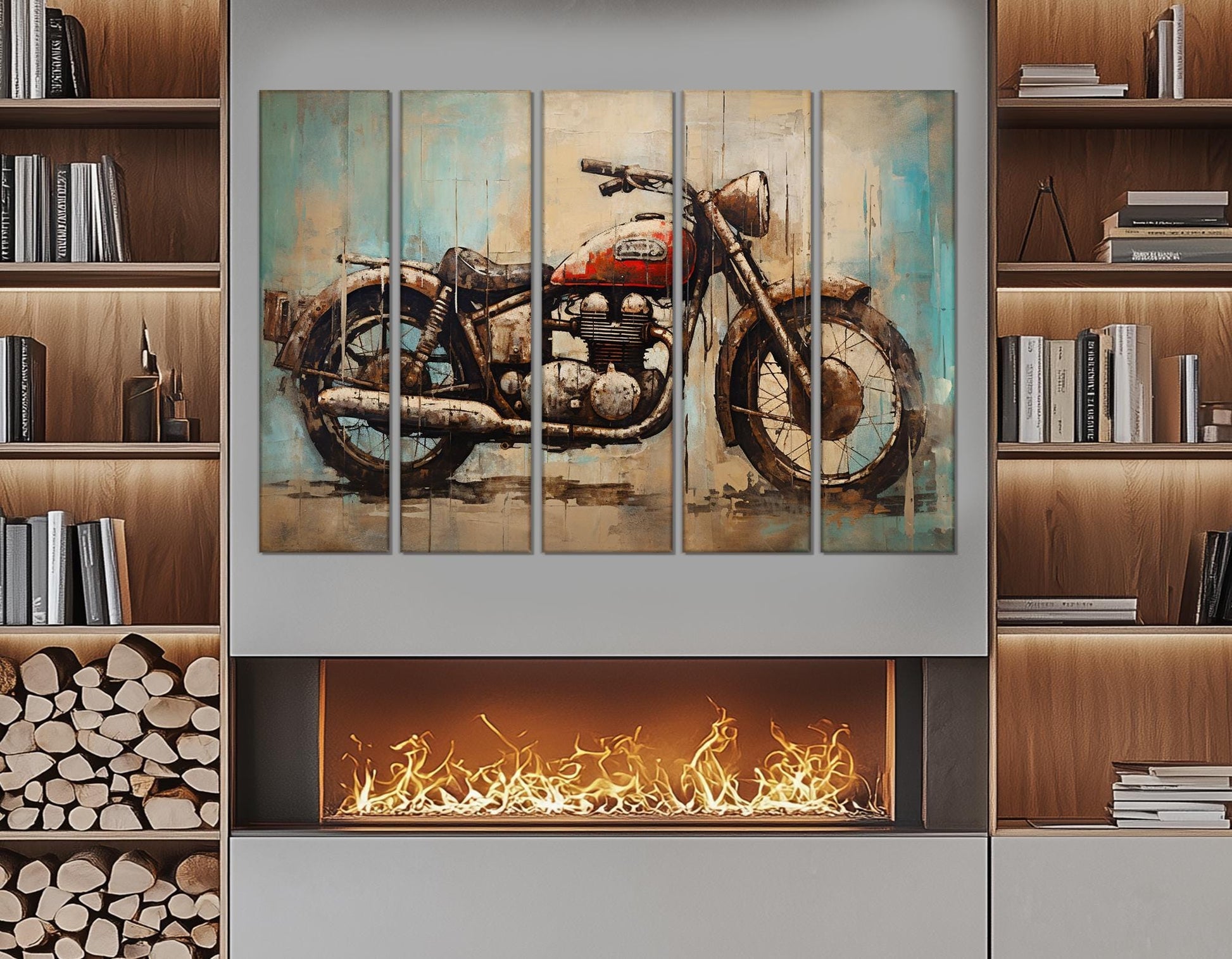 Motorcycle Canvas Print - Rustic Biker Club Decor | Framed, Ready to Hang