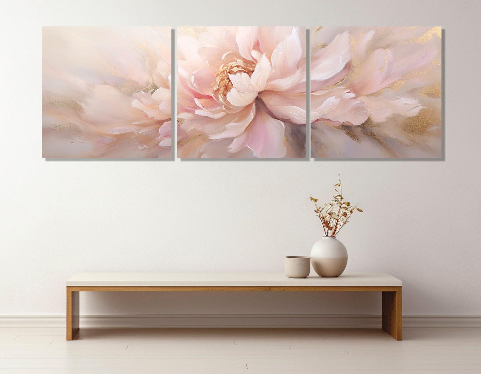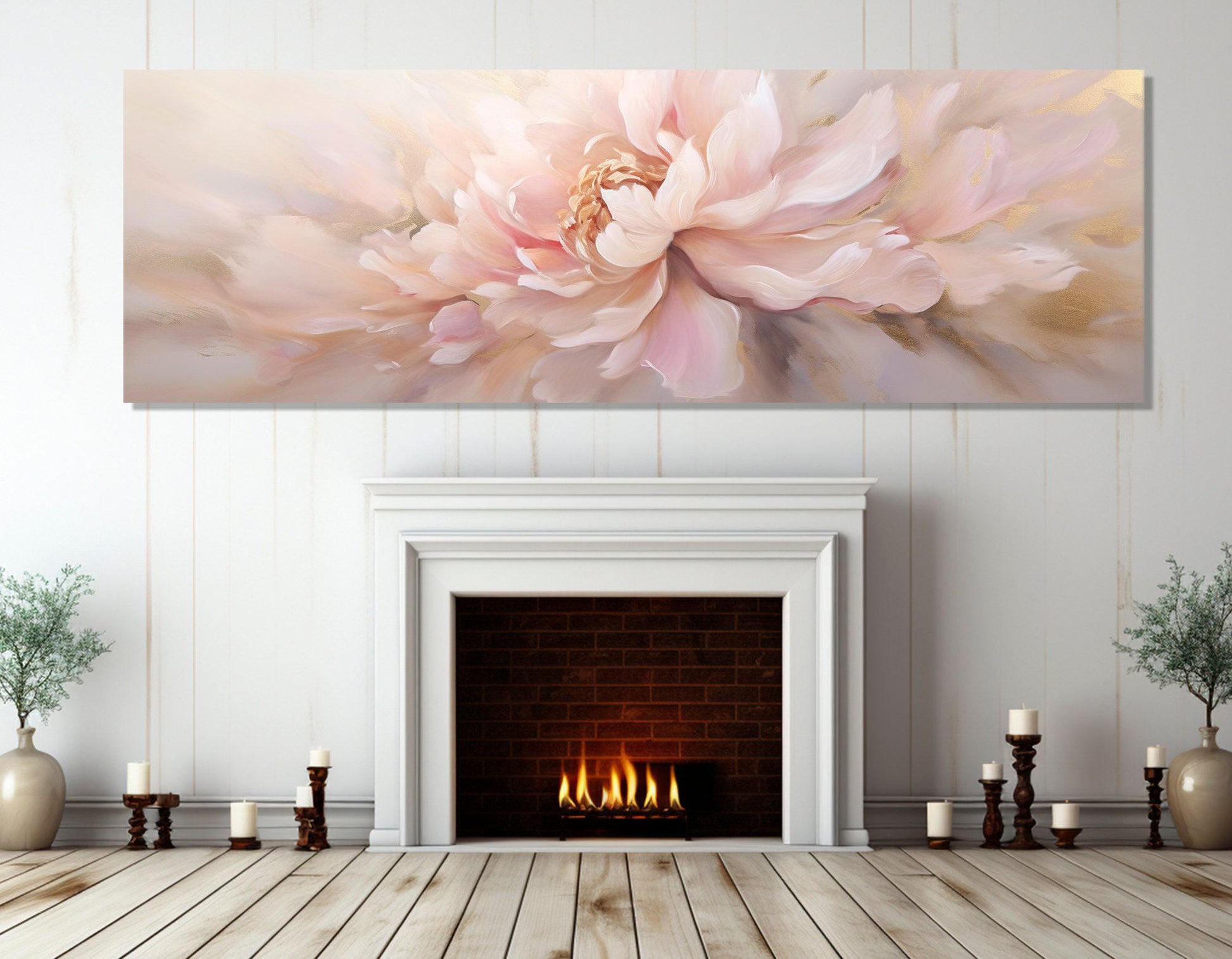 The Pink Peony Canvas Art brings a serene and elegant floral touch to any room, perfect for enhancing your bedroom or living space with gentle tones painting. This large floral painting features a panoramic canvas print that captures the delicate beauty of peony flowers in soft colors wall art, creating a calming atmosphere and elevating your interior design.