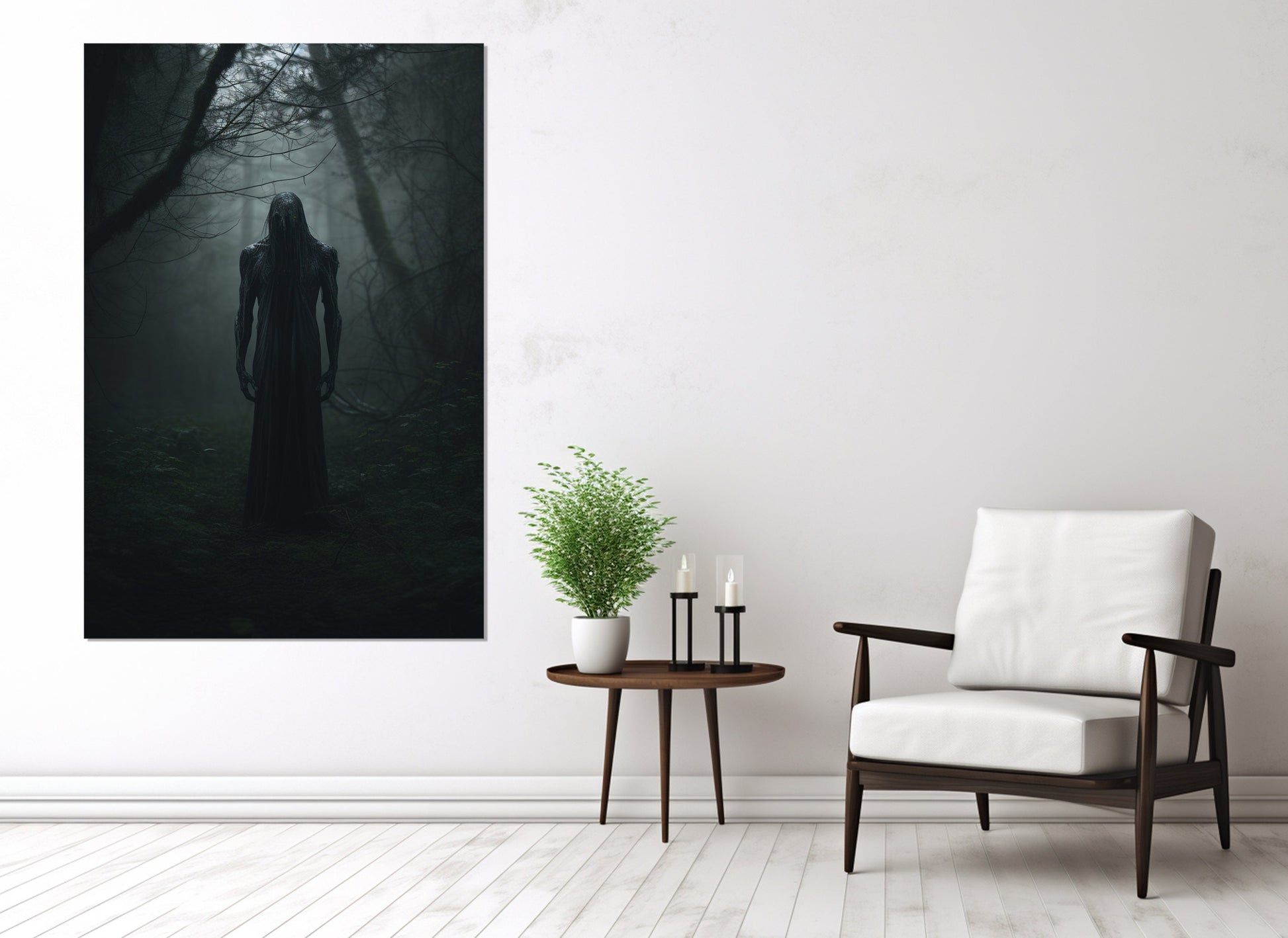 The Supernatural Canvas Print brings a captivating blend of abstract gothic art and mystical wall decor to your living space, designed to transform any room with its enigmatic shadow figure artwork. This ready to hang canvas features a gallery wrapped cotton canvas print that showcases the mysterious "Whispers of Darkness," an abstract gothic wall art piece perfect for fans of dark academia print and Victorian style decor. Measuring between 24"x16" (60x40 cm) and 60"x40" (150x100 cm), this framed canvas art is crafted on 350 gr/m2 high-quality 100% cotton canvas stretched over a solid wood frame with a depth of 1.25" (3 cm). Choose from a stretched canvas or an enhanced floating frame canvas option that adds sleek sophistication to your walls.