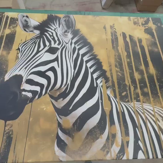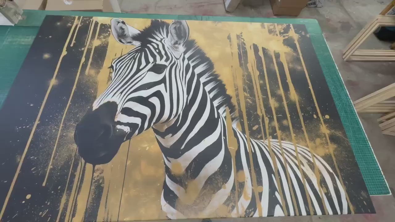 Zebra Canvas Print – Black and Gold Abstract Zebra Art, Ready to Hang Wall Decor
